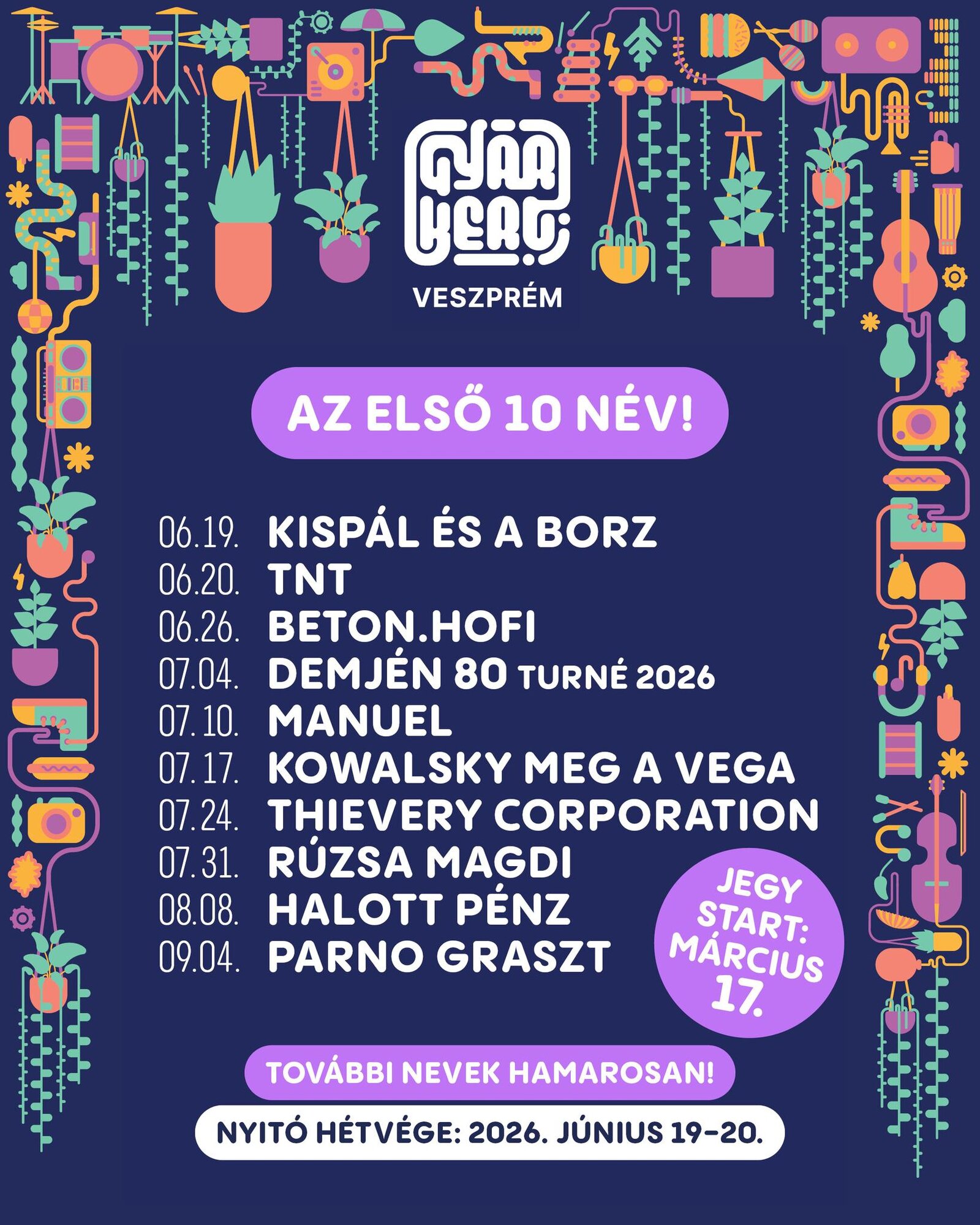 Megérkeztek a 2026-os Gyárkert szezon első nevei